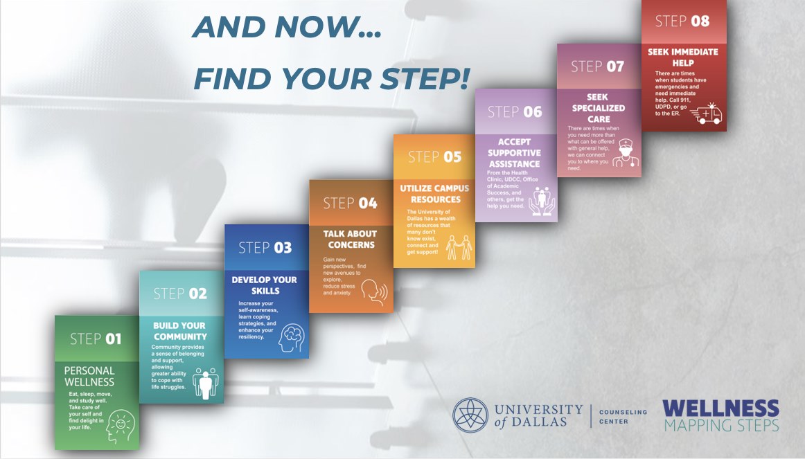 If you have any needs or questions, please get in touch with us at counseling@udallas.edu.